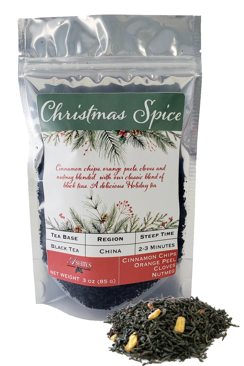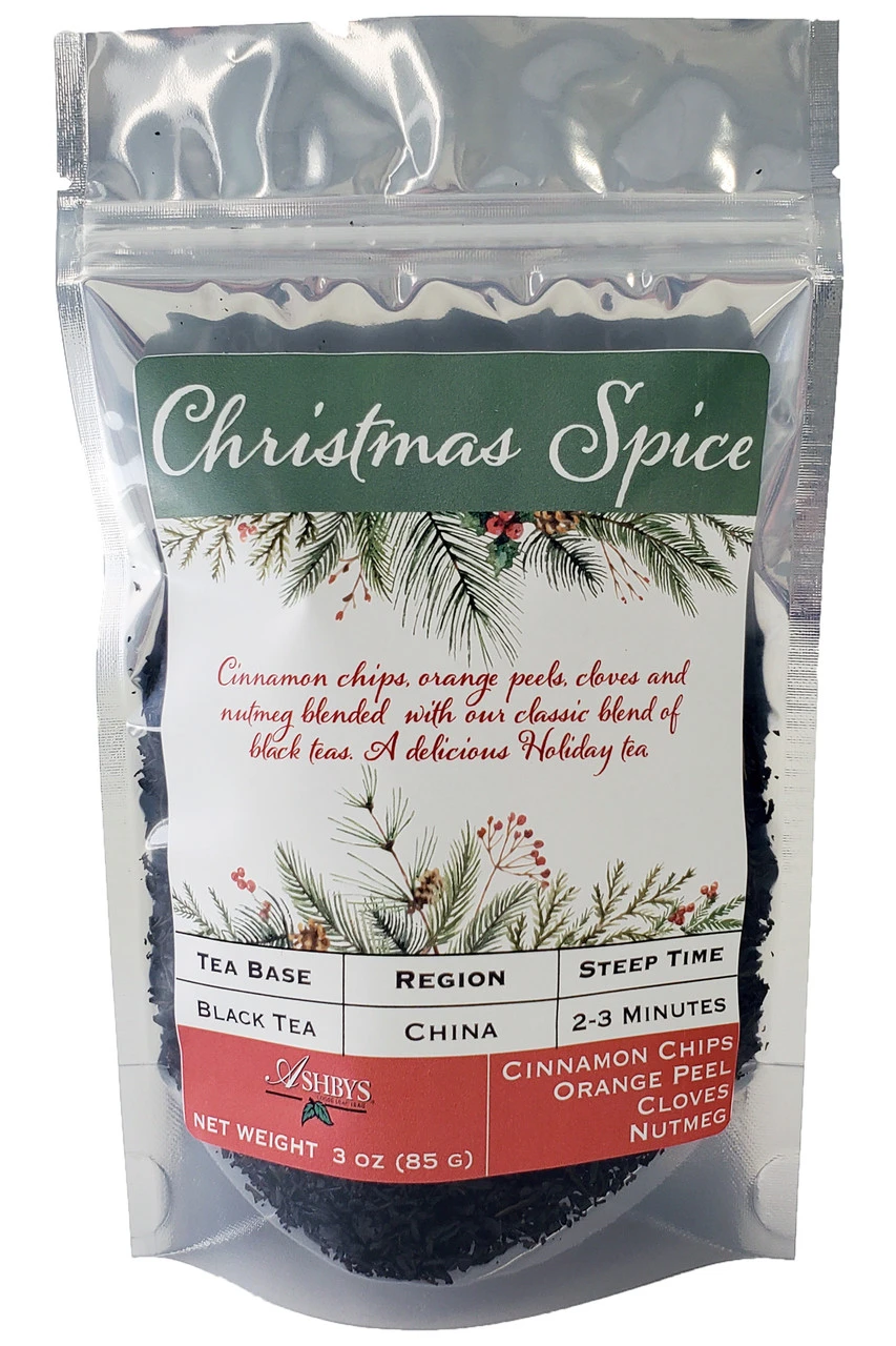 Cinnamon, cloves, nutmeg and orange blended with black tea. A delicious Holiday tea.