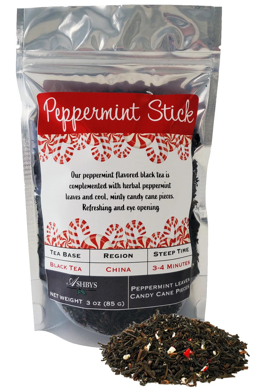 Our peppermint flavored black tea is complemented with herbal peppermint leaves and candy cane pieces.