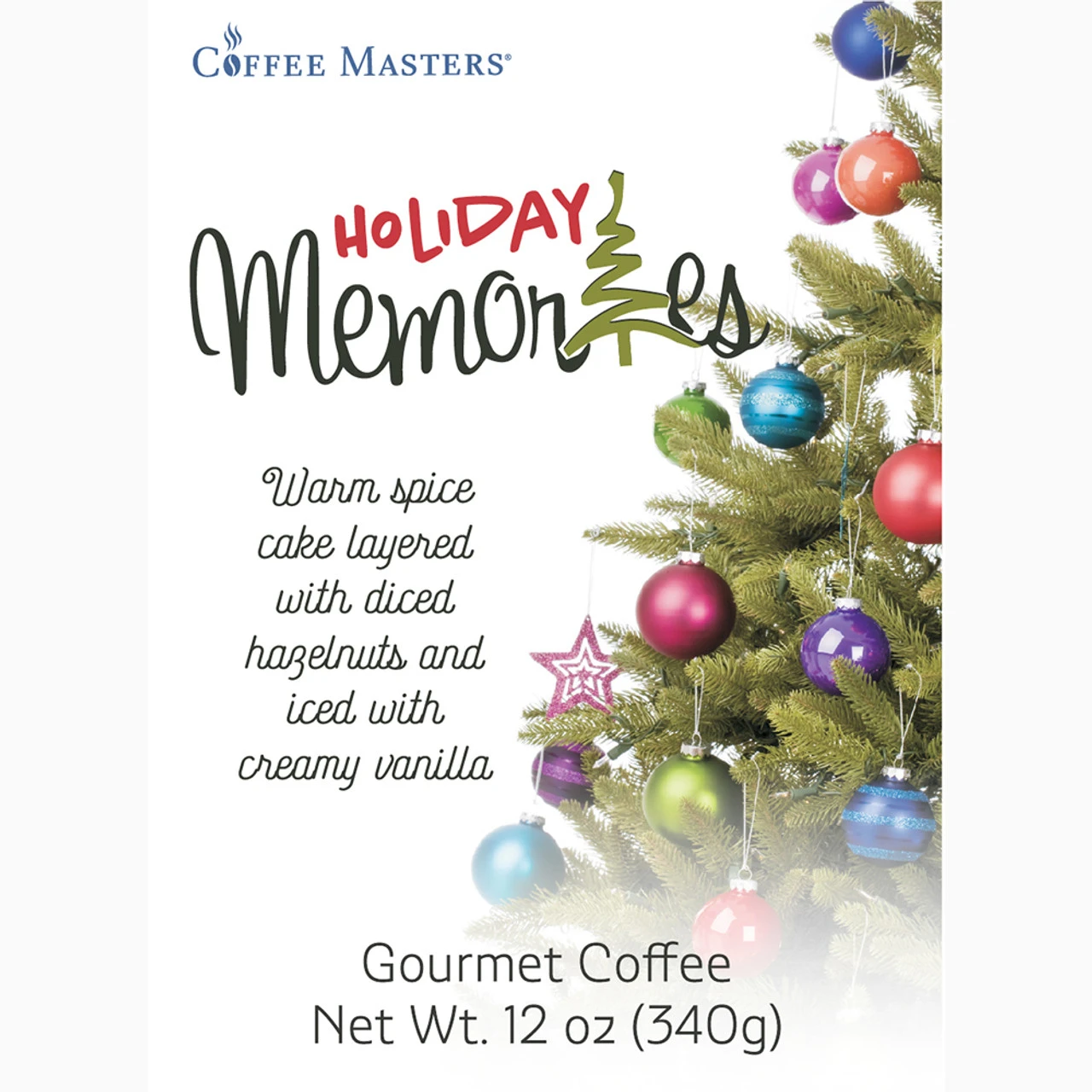 Our Holiday Memories flavored coffee all dressed up in a white valve bag with a holiday themed label. Fresh roasted coffee flavored with the taste of hazelnut, vanilla and spices.