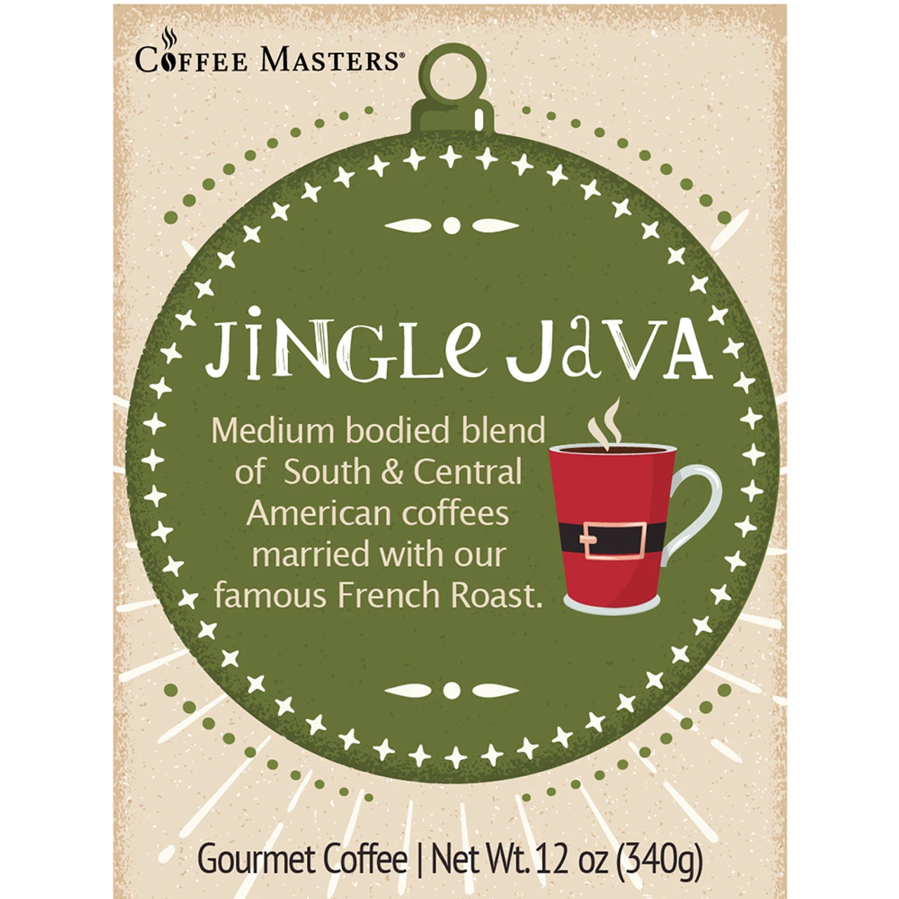 Our popular Jingle Java unflavored coffee all dressed up in a red valve bag with a holiday themed label. Fresh roasted 100% Arabica coffee with the taste of Central and South American beans and a bit of dark roast.